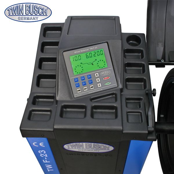Новый TWF-23 имеет 40-миллиметровый вал и удлиненный вал крепления колеса для лучшей балансировки широких шин. Оснащен ножным тормозом для фиксации вала при зажиме колеса или балансировке. Измерительный рычаг с оптическим / акустическим датчиком.