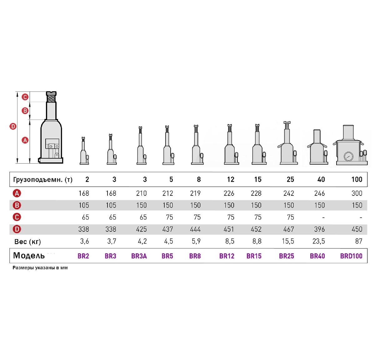 Домкрат гидравлический бутылочный BR5, г/п 5 т