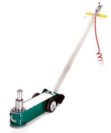 Домкрат подкатной, гидравлический, с возможностью подключения к пневматической линии. Применяются телескопические домкраты для грузовых автомобилей, автобусов и сельскохозяйственной техники. Технические характеристики: г/п 25/10т, в комплекте с 2-мя проставками для увеличения высоты подъема 70 и 120 мм. Минимальная высота подхвата 180 мм, максимальная высота подъема 365 мм, масса 54 кг, длина 760 м.Производитель Compac (Дания)