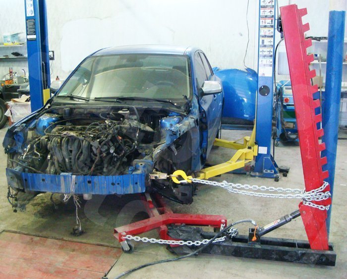 Устройство предназначено для мелкого и среднего кузовного ремонта легковых автомобилей, имеющих отбортовку порогов (для автомобилей, не имеющих отбортовку порогов применяются специальные крепления).