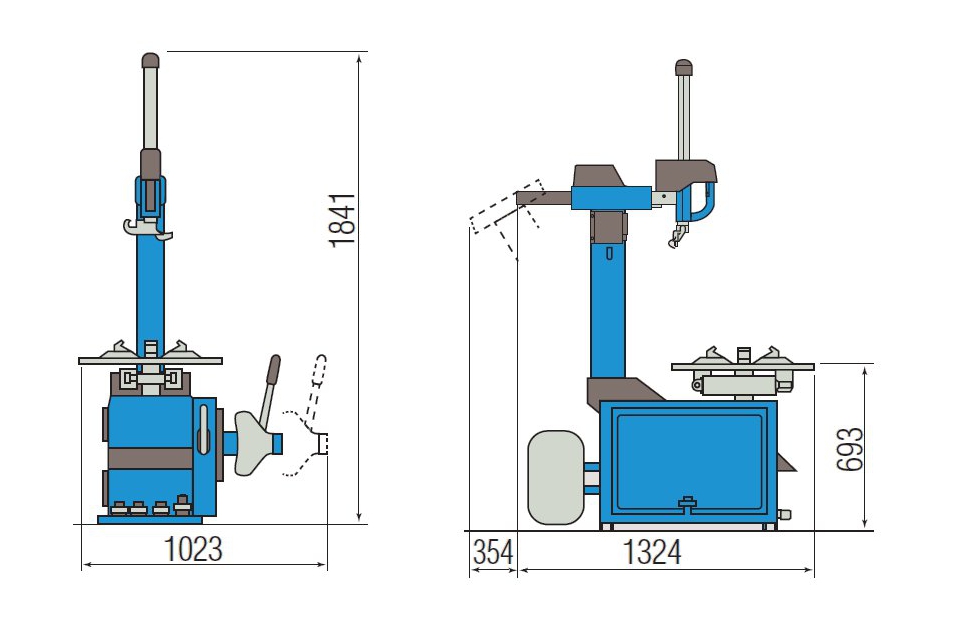 Станок шиномонтажный автоматический, октогональный стол, 0,55 кВт, 380 В, 8-10 бар, диаметр дисков 10-20", диаметр колеса до 1050 мм., ширина колеса до 305 мм., отжимное усилие 3600 кг.