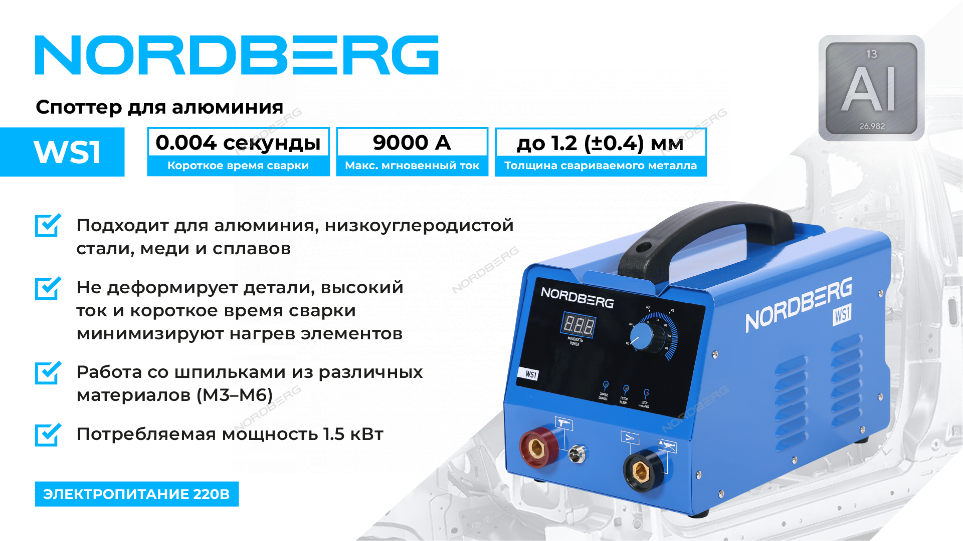 Аппарат точечной сварки Nordberg WS1, для алюминия, 220В