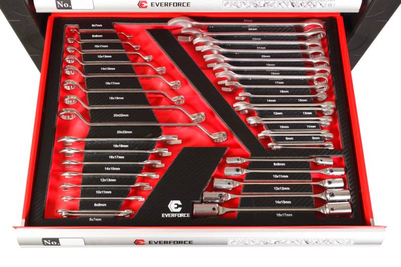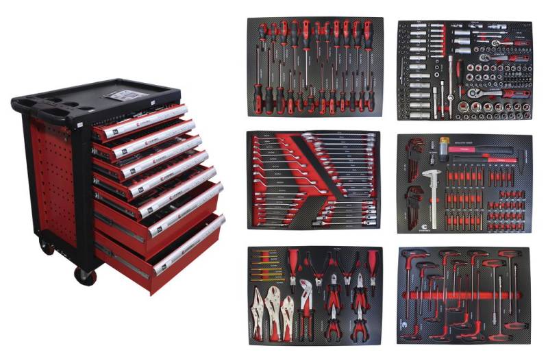 Тележка инструментальная 7-и полочная (красная) с набором инструментов 335(333) пластиковой защитой корпуса + 2 боковых перфорации 970х770х460мм, EVERFORCE EF-2202 47778