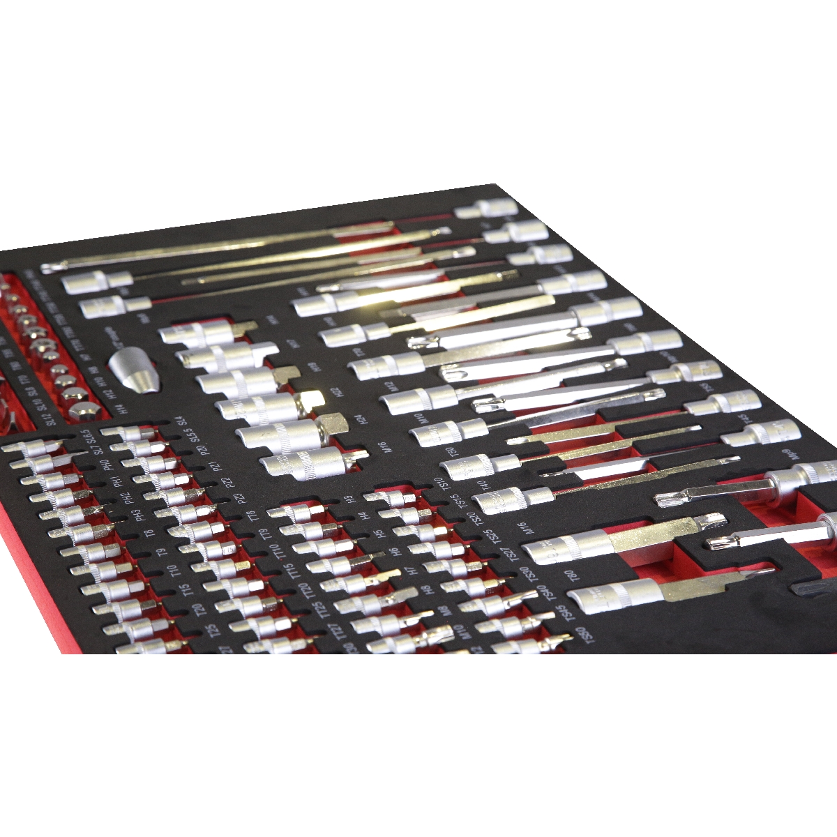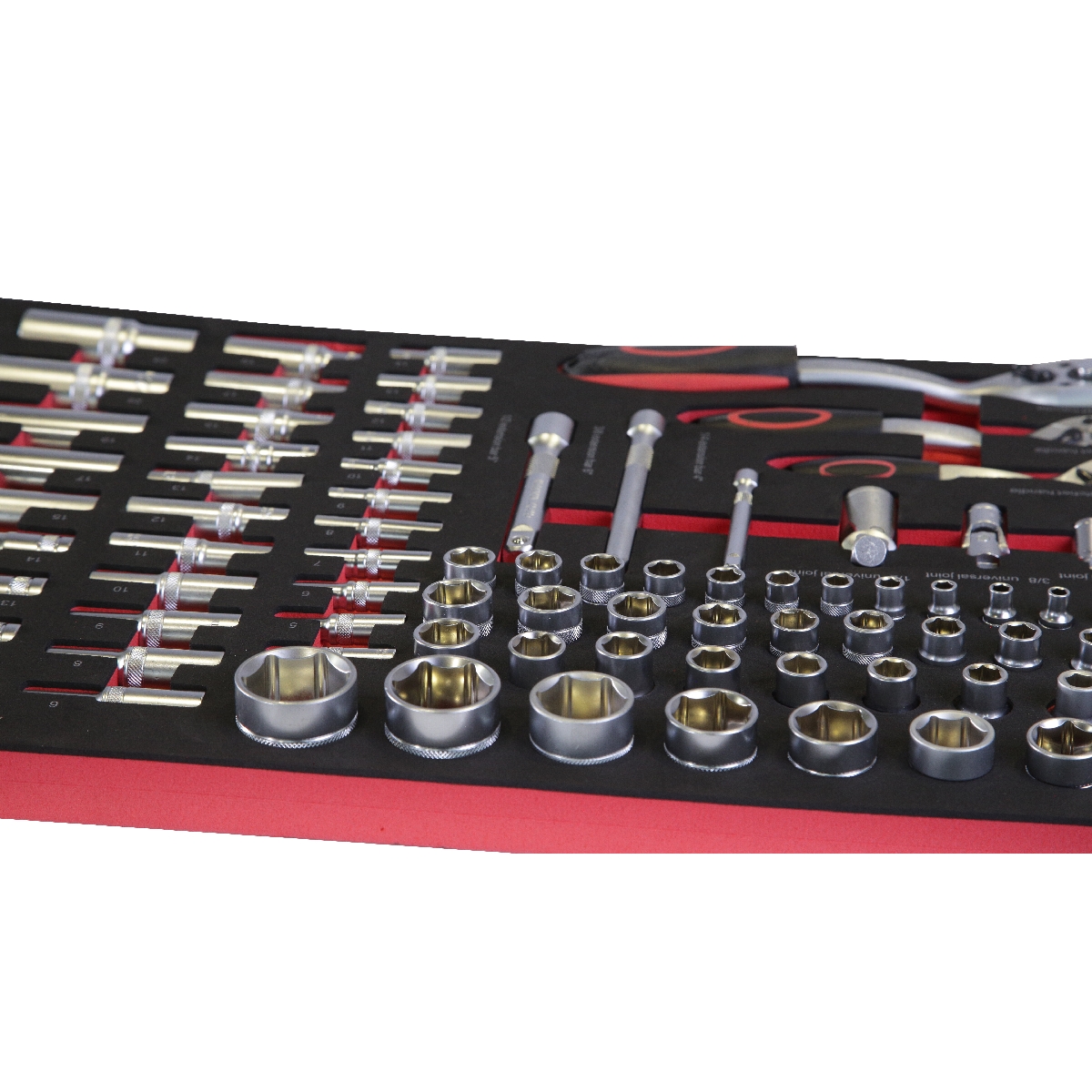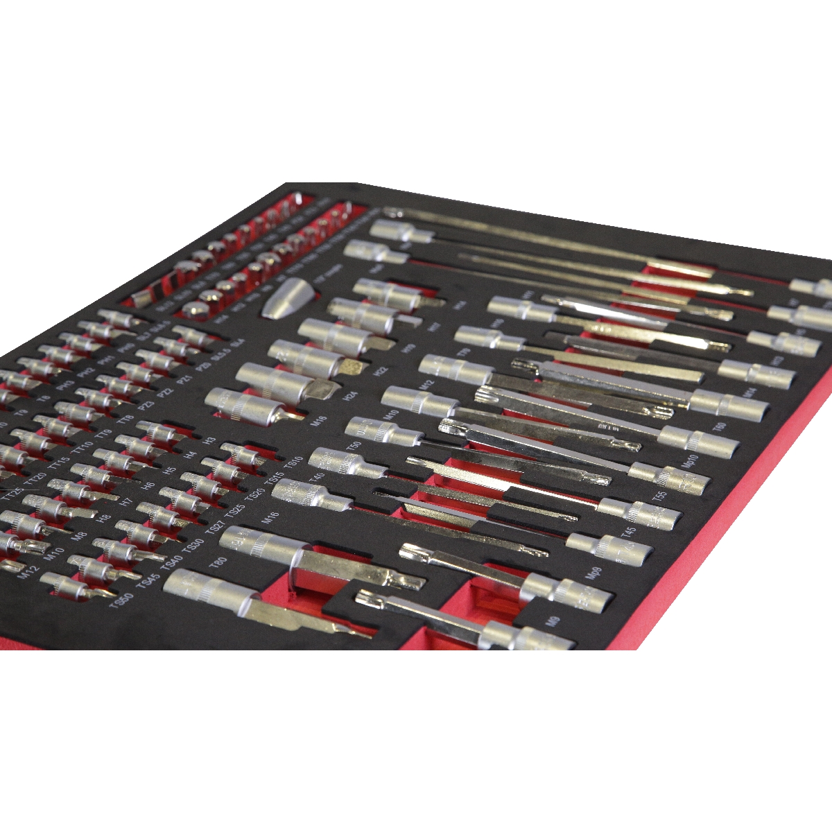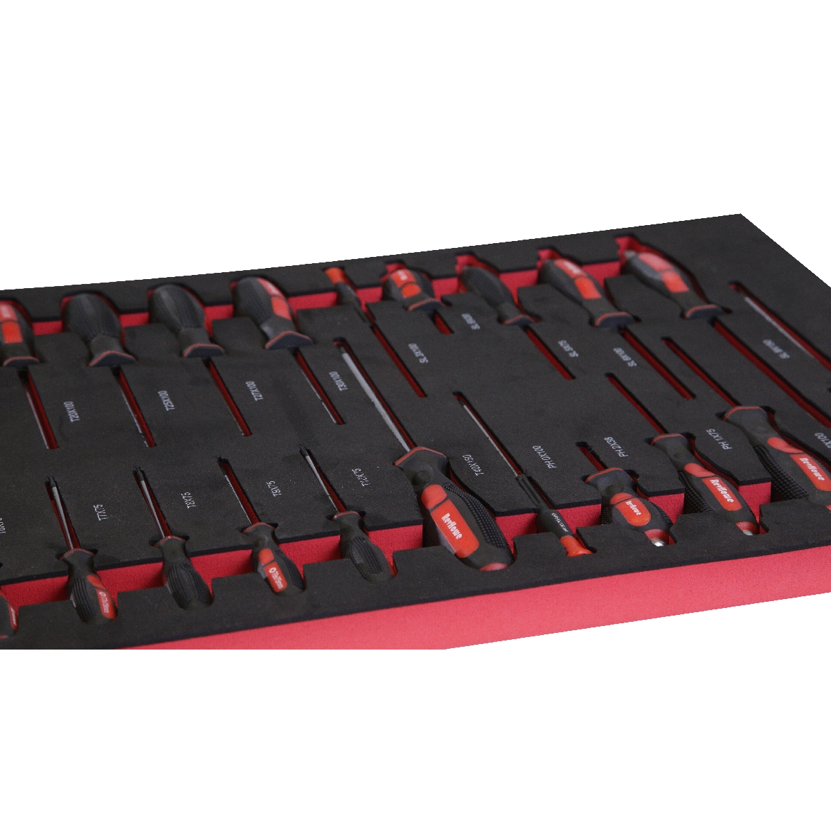 Инструментальная тележка KRW-TTB оснащена 7-ю выдвижными ящиками. В ПОДАРОК 6 ящиков укомплектованы ложементами с инструментом (277 предметов). Тележка предназначена для оборудования рабочих мест в автосервисах, мастерских и других производственных помещениях. Телескопические направляющие ящиков имеют механизм фиксации, не позволяющий самопроизвольно открыться ящику, даже если внутри находится инструмент, а также доводчиком, обеспечивающим плавное закрытие ящика. Корпус тележки изготовлен из высококачественной стали и окрашен порошковой краской. Перфорированные боковины предусматривают установку крючков. Для перемещения тележки предусмотрены обрезиненные стальные колеса Ф100 мм, одно из которых имеет стояночный тормоз.