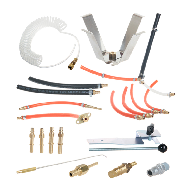 Контур «Бензиновый впрыск» предназначен для подачи агрессивных жидкостей без участия нагнетающих насосов. Давление нагнетания создается от внешней пневматической магистрали и регулируется пневморедуктором. Жидкость из емкости (0,5 л) подается в топливную магистраль по прозрачному шлангу (2,5 м) через набор универсальных адаптеров.
