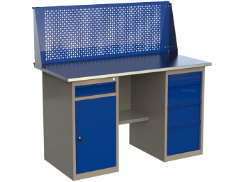 Стандартный цвет: корпус - серый глянец RAL 7030, ящики, перфопанель, двери\лотки тумб - синий RAL 5017.