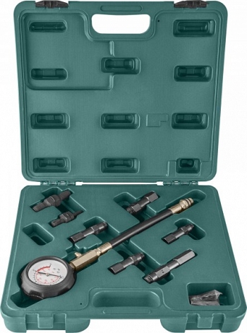 Универсальный компрессометр для бензиновых двигателей, применяющийся для точной диагностики работоспособности и обнаружения неисправностей цилиндро-поршневой группы (ЦПГ) и газораспределительного механизма двигателей автомобильной, тракторной, садовой, мотоциклетной техники. Прибор комплектуется большим 83-мм манометром в ударопрочном, обрезиненном корпусе. Соединительный шланг имеет адаптер-переходник для свечных отверстий М14 и М18.