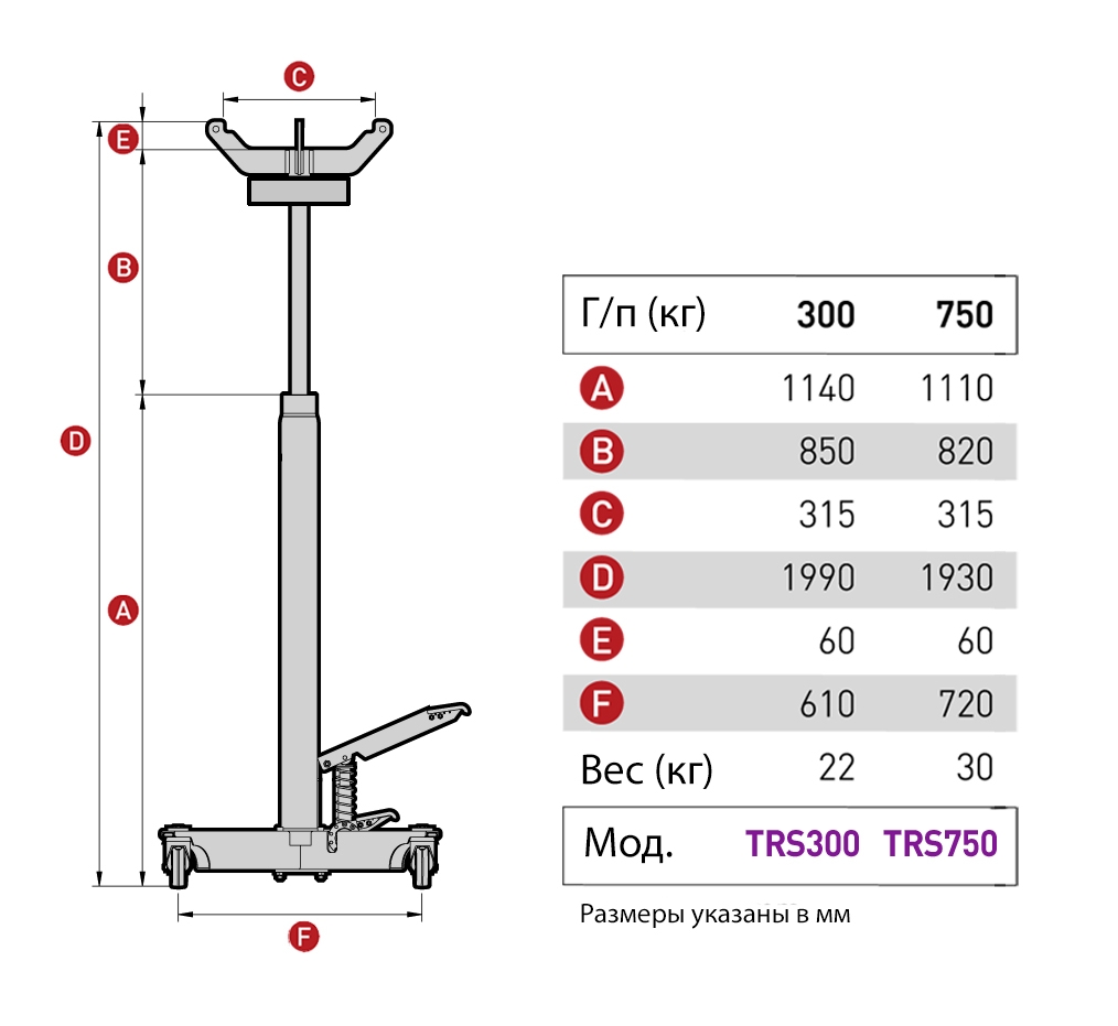 Трансмиссионная стойка MEGA TRS750_grey, г/п 750 кг, гидравлическая