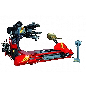 Универсальный станок для монтажа шин грузовых автомобилей, сельскохозяйственной, дорожной и промышленной техники с диаметром диска от 14" до 56", шириной до 1300 мм с глубоким ободом, бескамерных или с кольцом. Имеет зажимное устройство типа "тюльпан". Гидроблок оснащен клапаном, регулирующим рабочее усилие самоцентрирующегося зажима, что дает возможность работать с полной безопасностью с особо «деликатными» дисками. Кроме того имеет запатентованный самоцентрирующийся зажим из 6-ти кулачков, кулачки снабжены новыми подвижными зубчатыми секторами, которые дают возможность зажимать любой тип дисков. Две скорости вращения.