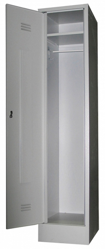 Шкафы раздевальные сварной конструкции. Выполнены из высококачественной стали толщиной 0,6 мм. Одно отделение, включающее в себя: полка под головной убор, перекладина, 2 крючка, вентиляция на двери. Шкафы покрыты порошковой краской (шагрень) серого цвета RAL7035