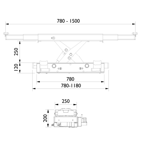 Длина каретки: 780-1180 мм