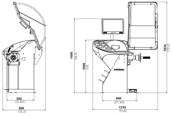 -В стандартную комплектацию стенда входит ЖК лампа, ярко освещающая внутреннюю часть обода. Освещение облегчает точный ввод данных обода и облегчает очистку места установки груза на ободе
