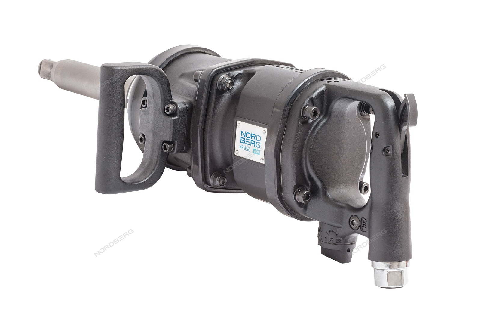 Пневмогайкoверт 1 NORDBERG ECO NP18360, усилие 3600Hм, посадочный квадрат 1", удлиненный вал. Гайковерт предназначен для сервисного обслуживания грузовых автомобилей.