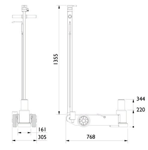 Домкрат пневмогидравлический подкатной, предназначен для поднятия грузов весом до 25 тонн, для грузовых а/м и автобусов с высоким клиренсом