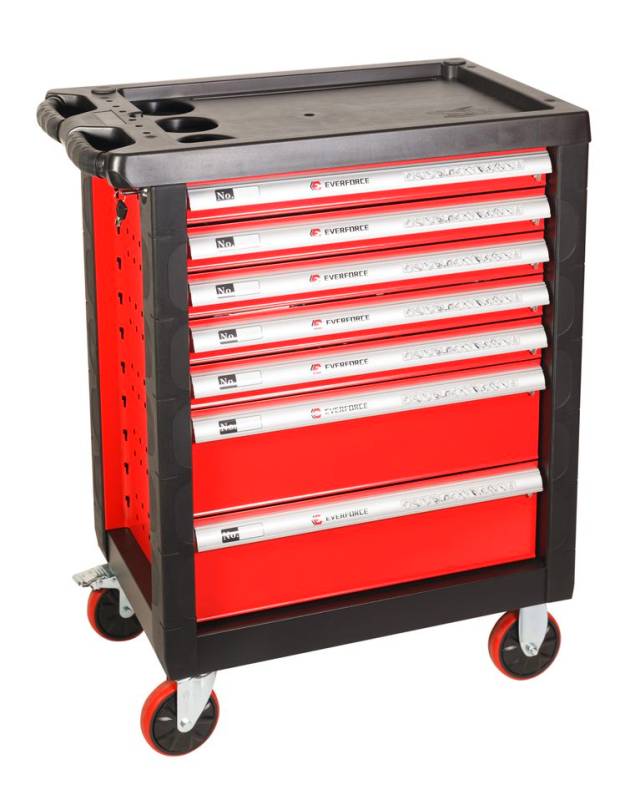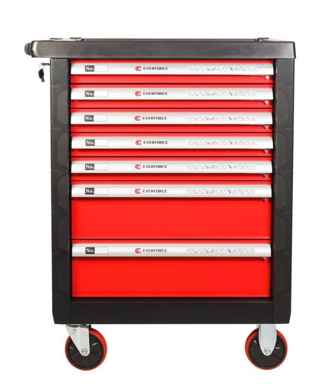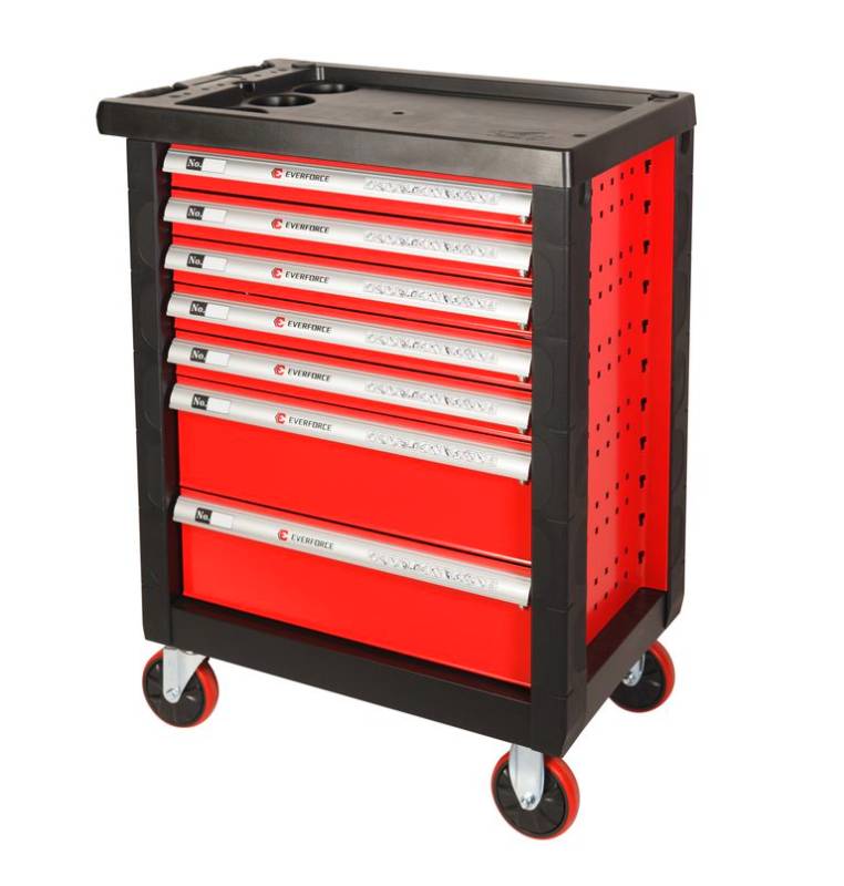 Тележка инструментальная 7-и полочная (красная) с набором инструментов 335(333) пластиковой защитой корпуса + 2 боковых перфорации 970х770х460мм, EVERFORCE EF-2202 47778