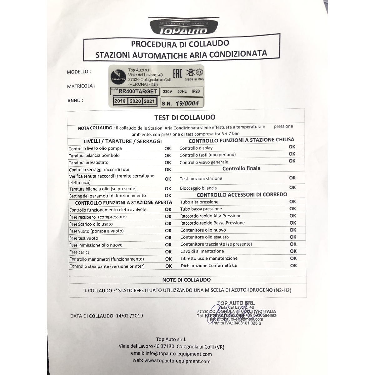 Каждая установка протестирована на заводе-производителе. Результат проверки подтверждается вложенным в комплект листком контроля (см. фото)