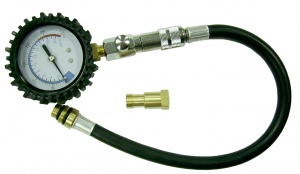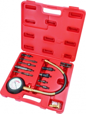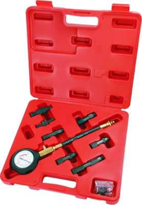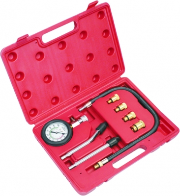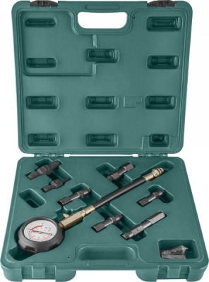 В набор компрессометра обычно входит – манометр, штуцер, шланг, переходник, иногда также в комплект может входить соединительный конус для подсоединения к двигателю.
