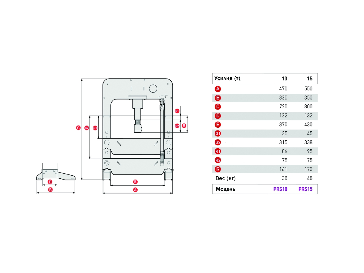 Пресс гидравлический 15т, ручной привод, настольный MEGA PRS15