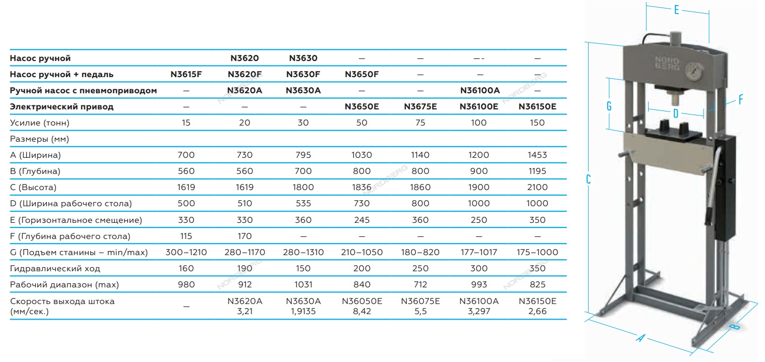Напольный гидравлический пресс с ножным приводом NORDBERG AUTOMOTIVE N3615F
