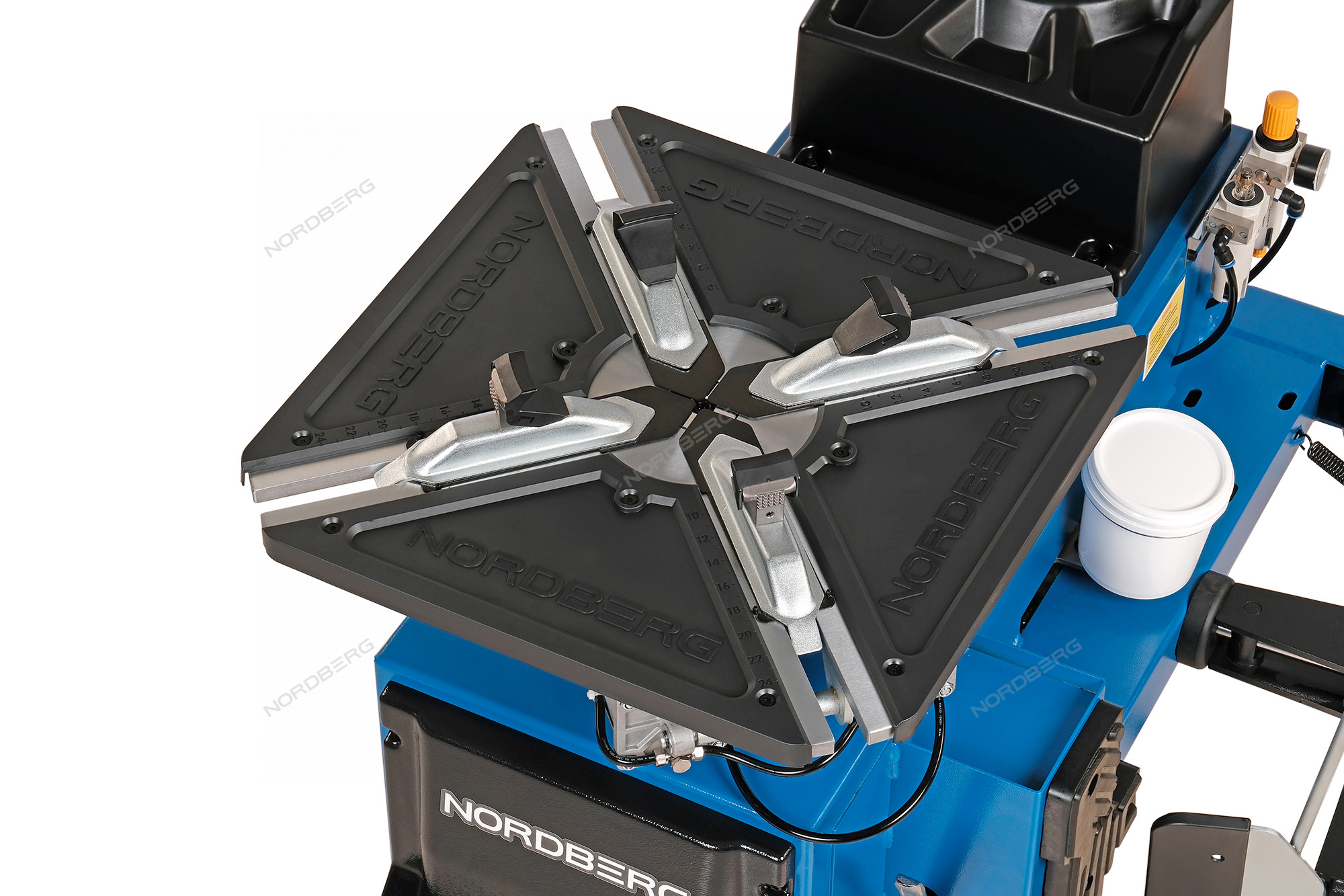 Станок шиномонтажный полуавтоматический, односкоростной, стол с накладками, синий NORDBERG 4639,5ID(B) 220. Защитные пластиковые накладки на рабочий стол в комплекте