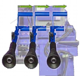 Механизм оборудован ручным насосом, который обеспечит перемещение станка внутрь фургона, в случае, если произойдёт отключение электропитания. Каждый клапан помечен определённым цветом.